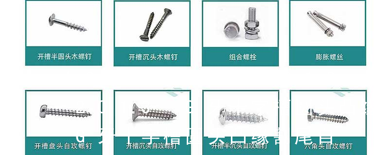 1.机螺钉 2.自攻螺钉 3.钻尾螺钉 4.墙板钉 5.纤维板钉 6.木螺钉7.六角木螺钉 8.不脱出螺钉 9.组合螺钉 10.微型螺钉 11.家具螺钉 12.电子螺钉头型:1.六角头(hexagon head) 2.六角头法兰面(hexagon head with flange) 3.