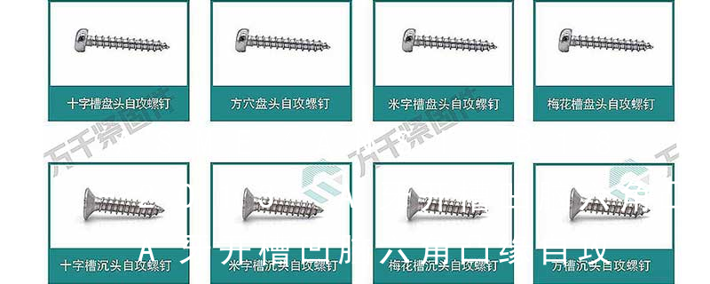 1、Flat:平头 (锁入后,顶部与工作件齐平)2、Oval:色拉头、O头、半沉头 3、Round:圆头 4、Pan:圆扁头 5、Truss:大圆扁头 6、Hex:六角头 A-5:Finish Code/外观处理。公制自攻螺丝 :于品名后方直接标示 Tap 主要分类包括普通螺丝、自攻螺丝和膨胀螺丝三种。有头螺钉Cap screw 过去限于全牙的扣件,但这现在并非标准用法。六角头螺钉Hex cap screw与大六角螺栓Hex bolt 顾名思义为头部为六角型的外螺纹扣件,设计为使用扳手转动。