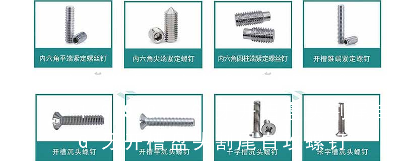 (铁板牙自攻螺丝) B-2: Plastic Tapping Screw. (塑胶用,自攻螺丝) C: Wooden Screw : 木工螺丝 D: Drywall Screw :水泥墙螺丝 E: Self Drilling Screws钻尾螺丝(不锈钢钻尾螺丝,复合材料钻尾螺丝) F:膨胀螺丝,四片膨胀螺丝又