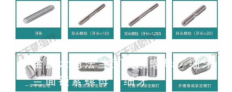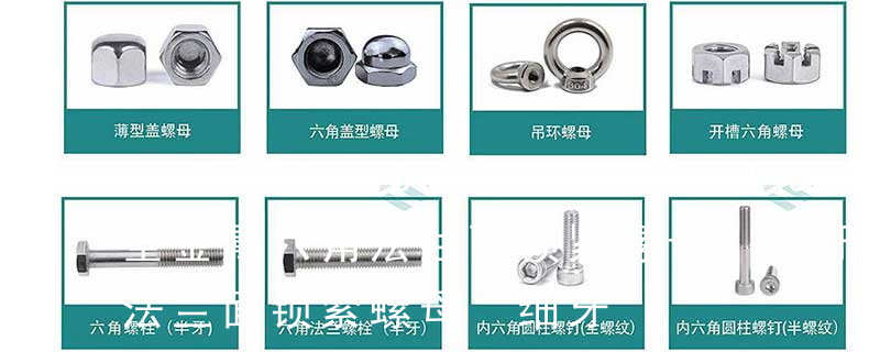 不锈钢国标螺母包括:六角螺母(GB6170/DIN934)、薄螺母(GB6172/DIN439)、重型螺母(公制、美制)、尼龙锁紧螺母(DIN985-DIN982厚型)、全金属锁紧螺母(DIN980M),盖型螺母(DIN1587)。法兰面螺母(GB6177/DIN69