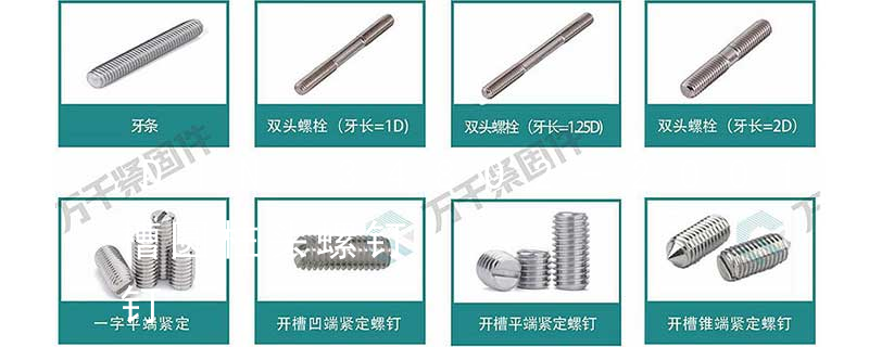 平头螺丝头部是平头的,一般是带十字槽,内六角,加减槽,梅花槽,一字槽等的;沉头螺丝又称作平机螺丝,其头部,是一个90度的锥体,和常见的木螺丝类似,头部有工具拧紧槽,有一字形、十字形、内六角形等;圆头螺丝有只 方头圆柱底端螺栓 Square head bolts with half dog point 方头带垫关圆底端 螺栓 Square head bolts with collar,half dog point T型槽螺母 T-slot nuts 单头螺柱 Single end studs 地脚螺栓 Masonry bolts 带槽圆