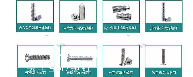 扁平头、扁圆头铆钉主要用于金属薄板或皮革、帆布、木料等非金属材料的铆接场合。大扁平头铆钉主要用于非金属材料的铆接场合。半空心铆钉主要用于随载荷不大的铆接场合。无头铆钉主要用于非金属材料的铆接场合。空心铆钉重量轻,钉