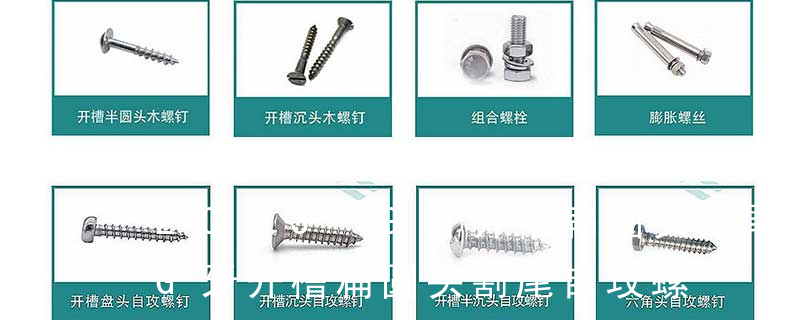 1、Flat:平头 (锁入后,顶部与工作件齐平)2、Oval:色拉头、O头、半沉头 3、Round:圆头 4、Pan:圆扁头 5、Truss:大圆扁头 6、Hex:六角头 A-5:Finish Code/外观处理。公制自攻螺丝 :于品名后方直接标示 Tapp (铁板牙自攻螺丝) B-2: Plastic Tapping Screw. (塑胶用,自攻螺丝) C: Wooden Screw : 木工螺丝 D: Drywall Screw :水泥墙螺丝 E: Self Drilling Screws钻尾螺丝(不锈钢钻尾螺丝,复合材料钻尾螺丝) F:膨胀螺丝,四片膨胀螺丝又